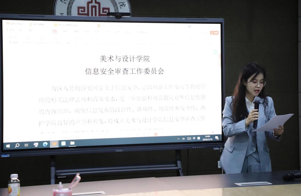 赵昆副院长详细介绍了学院“信息安全审查工作委员会”的成立背景、组织架构与工作职责。她重点说明了审查的三大板块:教师教学言论与行为、学生作品对外传播、学院官方及师生自媒体平台发布。她要求全体教师提高政治敏感度,对所指导作品的思想政治导向、是否存在抄袭或不当使用AI等进行严格把关,并明确了出现问题后的连带追责机制,旨在通过制度性安排提前预防 。